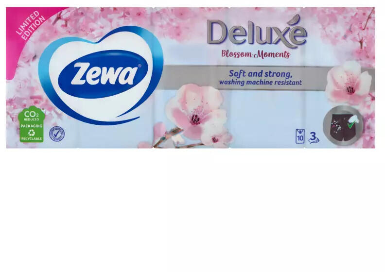 A Zewa Deluxe Original egy kényeztető puhaságú, háromrétegű papírzsebkendő . A Zewa zsebkendők valódi gyapotrostokkal biztosítják a szakadásmentességet, miközben érintéskor a pamut puhaságát nyújtják. Ez a zsebkendő 10x10 darabos kiszerelésben érhető el. Ez a papírzsebkendő tökéletes választás mindennapi használatra. Ráadásul a könnyen nyitható és visszazárható csomagolásnak köszönhetően használata egyszerű és praktikus. Ha kényeztető puhaságot és frissességet szeretnél ez remek választás lehet!