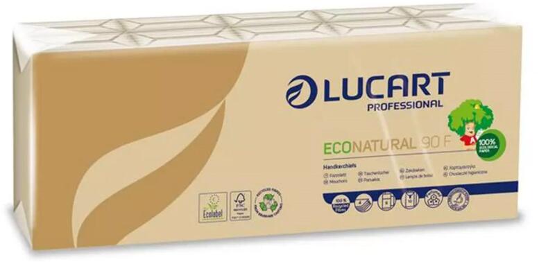 Paraméterek, termékleírás - Lucart Papírzsebkendő 4 rétegű 9 lap/cs 10 cs/csomag EcoNatural 90 F Lucart_843166J havanna barna (843166J) - web24