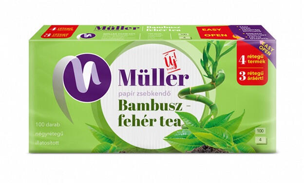 Müller Bambusz-fehér tea Papírzsebkendő 100db-os 4 rtg