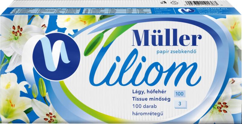 Müller Papírzsebkendő 3 rétegű 100 db/csomag Liliom illatmentes (42529) - irodasziget