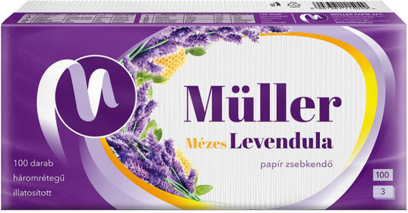 Müller Papírzsebkendő 3 rétegű 100 db/csomag mézes levendula (49278) - iroda-ellatas