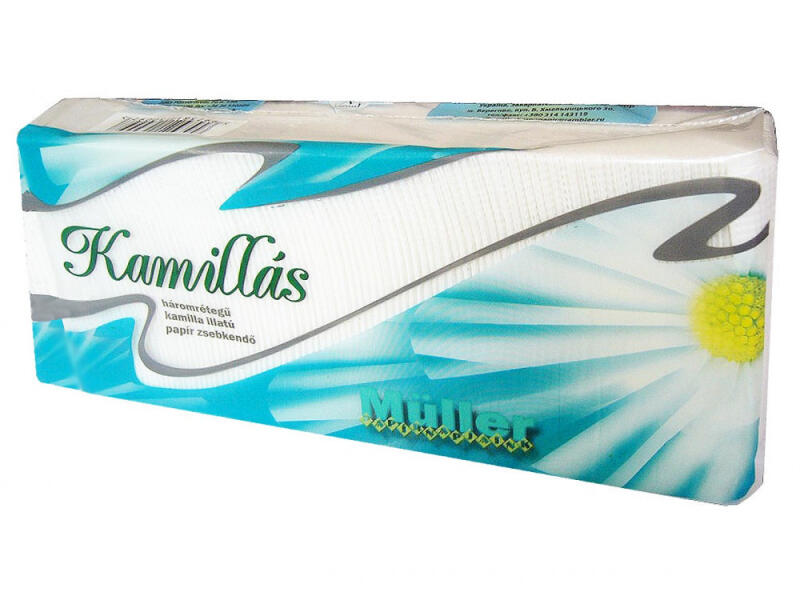 A Müller 3 rétegű papírzsebkendő Kamilla a gyógynövényes frissesség és a puhaság tökéletes harmóniáját kínálja.