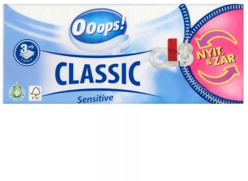 Ooops! ! Classic papírzsebkendő Sensitive - 3 rétegű, 90db (TDC36433)