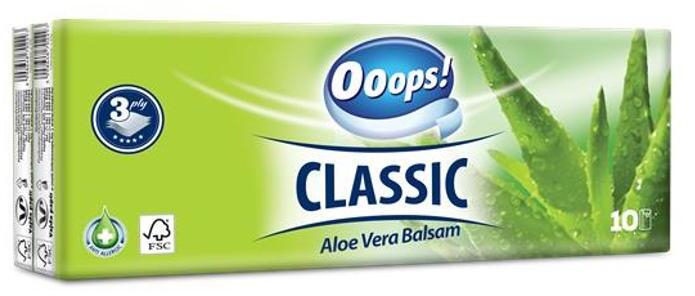 Ooops! Papír zsebkendő, 3 rétegű, 10x10 db, OOOPS "Classic", aloe vera (KPC30101161) - nyomtassingyen