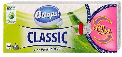 Papírzsebkendő OOOPS! Classic Aloe Vera 3 rétegű 90 darabos - Fotoland fotó és irodaszer webáruház - Rendelj raktárról, 358-os áron. Gyors kiszállítás.