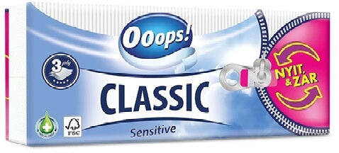 Papírzsebkendő Ooops! Classic Sensitive 3 rétegű 90 db-os