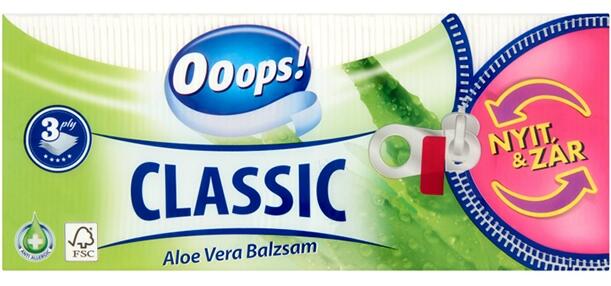 Ooops! papír zsebkendő aloe vera. Tiszta cellulóz, 90 db, 3 rétegű. . Termékek a mindennapokra, Babaápolók, babafürdetők, pelenkázó kellékek. Immunerősítők, Vitaminok, ásványi anyagok Megfázás és meghűlés elleni vitaminok. Háztartási eszközök Felmosók, padló takarítás, mosogatókefék, szivacsok, mosószerek, folteltávolítók, mosókapszulák, öblítők. Konyhai törlőkendő, szemeteszsák. Szobai Illatosítók, illatgyertyák, illatolajok, légfrissítők. Szájápoló termékek, fogkefék, fogkrémek, szájvizek. Borotválkozó szerek, szőrtelenítők, intim szőrtelenítés. Higiéniai termékek, dezodorok, kézápolás és szappanok, testápolás. Általános tisztítószerek, bútorápolók, vízkőoldók, háztartási fertőtlenítőszerek, Padló ápolók, szőnyegtisztítók, szőnyegápolók. Rovarriasztók, rovarírtók. 100%-os vásárlói elégedettség, gyors és kényelmes vásárlás a Szendrei Szépségcikk webáruházban szepsegcikk. hu