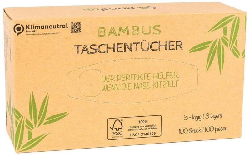 Pandoo eldobható bambusz zsebkendők, 3 rétegű, 100 db-os csomag