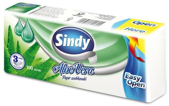 Papír zsebkendő, 3 rétegű, 100 db, "Sindy", aloe vera (KHHVP005)