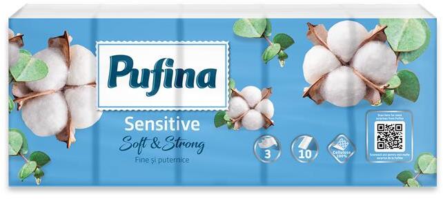 PUFINA Papír zsebkendő, 3 rétegű, 10x10 db, PUFINA Sensitive (KHH876) - iroda24
