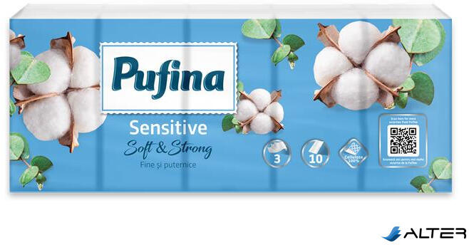 PUFINA Papír zsebkendő, 3 rétegű, 10x10 db, PUFINA "Sensitive (PP20833) - alter