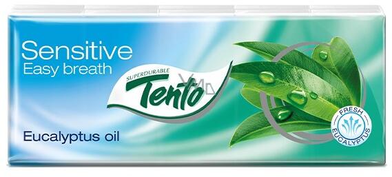 A Tento Sensitive Easy Breath Eucalyptus Oil papírzsebkendő rétegeit az eukaliptusz illatával dúsítottuk, ami megkönnyíti a légzést, garantálja a frissességet és - különösen megfázás esetén - jó hatással van hangulatára.