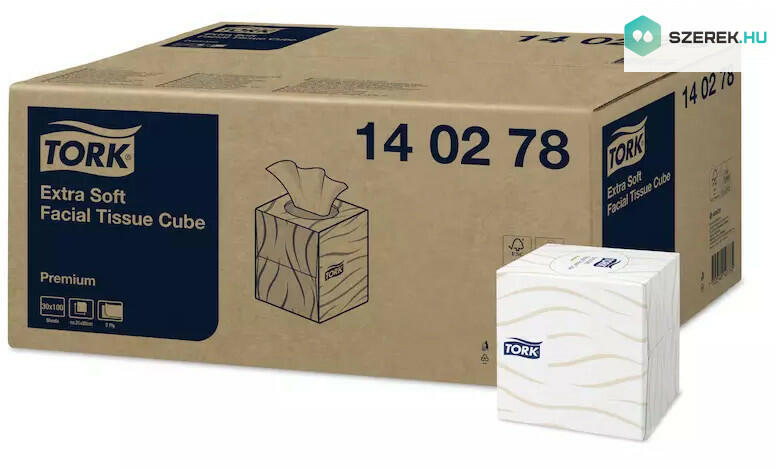 A Tork Extra Soft kozmetikai kendő modern kocka alakú dobozban érkezik; oda helyezhető, ahol éppen szükség van rá, és megjelenésével, minőségével és teljesítményével is elvarázsolja vendégeit.