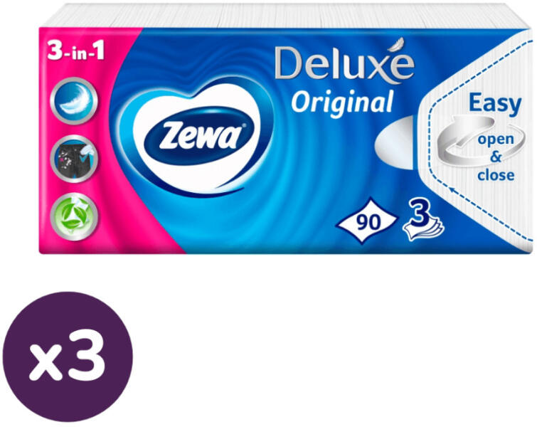 Zewa Deluxe Classic 3 rétegű papírzsebkendő (3x90 db)