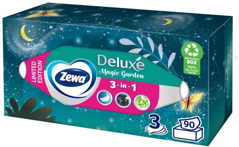 Zewa Deluxe illatmentes 3 rétegű dobozos Papír zsebkendő - Limited Edition 90db (28420)