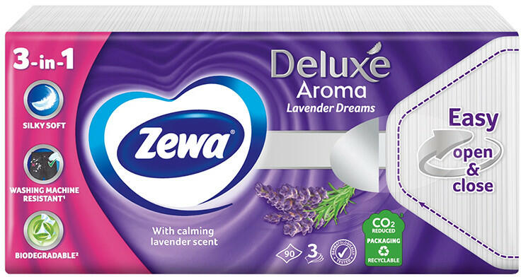 Zewa Deluxe Lavender Dream (levendula) 3 rétegű papírzsebkendő - 90 db