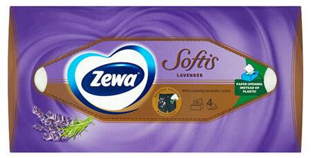 Kellemes levendula illattal átitatott, extra puhaságú, négyrétegű papírzsebkendő. Könnyen kivehető a praktikus Zewa Softis dobozból. Kiszrelés: 80 db/doboz Karton kiszerelés: 15 csomag/karton