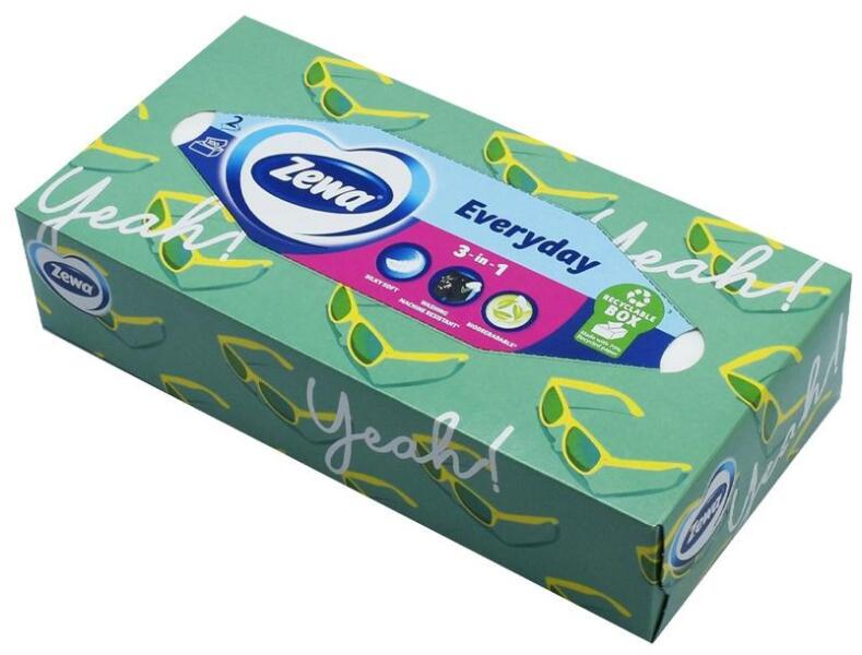 Jó választás a család minden tagjának: az új Zewa Everyday dobozok megbízhatóan jó minőségű papír zsebkendőt kínálnak.  Orrfújáshoz, kozmetikai felhasználásra, kéztisztításra, gyümölcsök letörlésére... nincs olyan feladat a mindennapokban, amelyre ne tudnának megoldást. A dobozokat színes, vidám, könnyed design teszi mindenki kedvencévé.