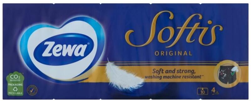 Zewa Softis Standard: 4 rétegű, extra puha, illatanyagmentes papír zsebkendő mindennapi használatra. mosógépbiztos puha és erős eldobható és higiénikus bőrgyógyászatilag tesztelt újrahasznosítható biológiailag lebomló  10 x 9 lap / csomag 24 csomag / karton   Katalóguskód: 53907 GPSR: Essity Aktiebolag (publ). Box 200, SE-101 23, Stockholm, Sweden, torkcontact@essity. com , www. essity. com