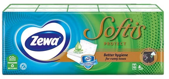 Papírzsebkendő ZEWA Softis Protect 4 rétegű 10x9 darabos
