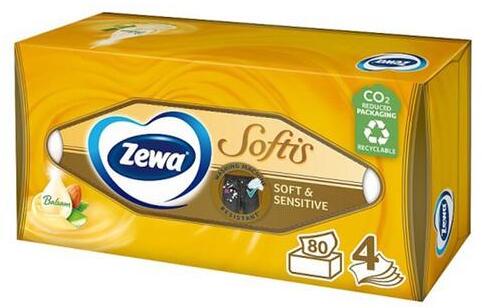 Zewa Papírzsebkendő ZEWA Softis 4 rétegű 80 darabos dobozos Soft & Sensitive (830423) - robbitairodaszer