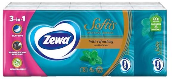 Papírzsebkendő ZEWA Softis Menthol Breeze 4 rétegű 10x9 darabos - 12.01800 - Papírzsebkendők -
