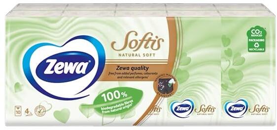 Papírzsebkendő ZEWA Softis Natural Soft 4 rétegű 10x9 darabos - 12.01801 - Papírzsebkendők -