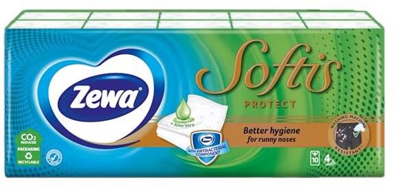 Papírzsebkendő ZEWA Softis Protect 4 rétegű 10x9 darabos - 12.01802 - Papírzsebkendők -