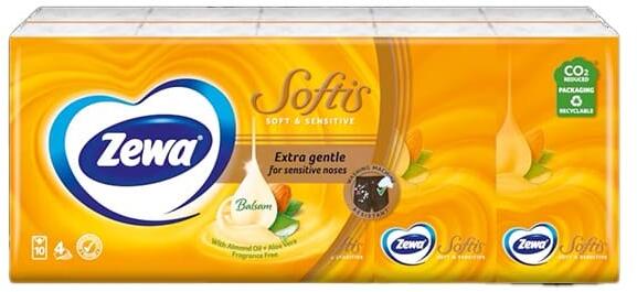 Papírzsebkendő ZEWA Softis Soft & Sensitive 4 rétegű 10x9 darabos - 12.01803 - Papírzsebkendők -