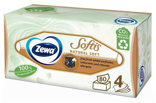 Zewa Softis 4rét. dob. papír zsebkendő NaturalSoft 80 db Új - delfinbuvar