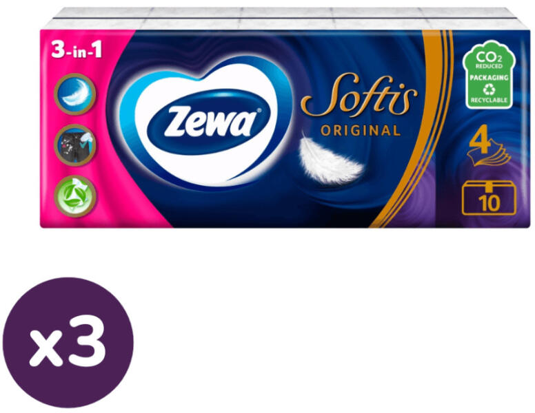 Zewa Softis Classic 4 rétegű papírzsebkendő (3x10x9 db)