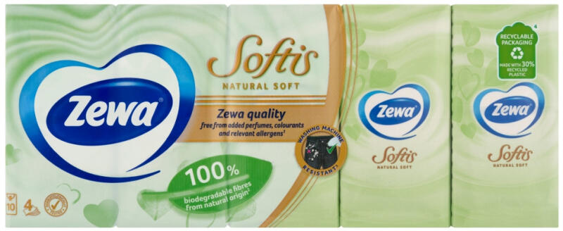Zewa Softis Natural Soft 4 rétegű papírzsebkendő (10x9 db)