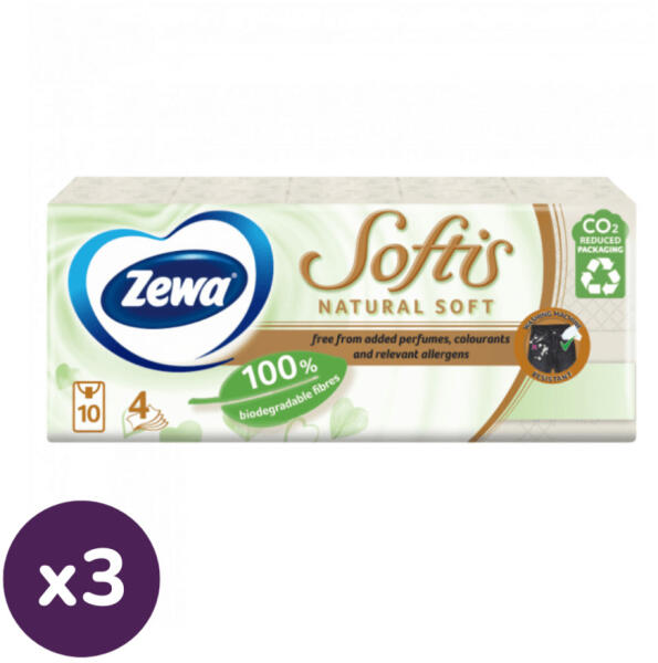 Zewa Softis Natural Soft 4 rétegű papírzsebkendő (3x10x9 db)