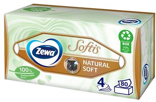 Zewa Softis Natural Soft illatmentes dobozos papír zsebkendő 4 rétegű 80 db