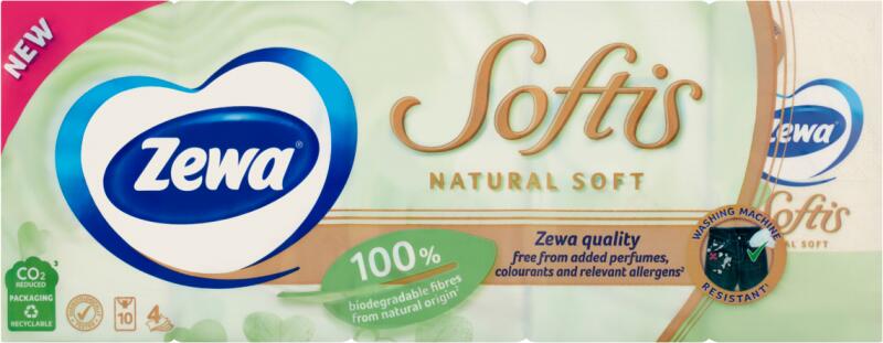 Zewa Softis Natural Soft illatmentes papír zsebkendő 4 rétegű 10 x 9 db