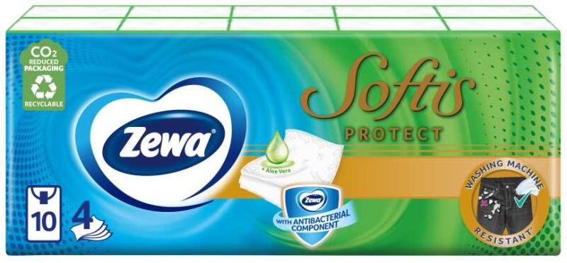 Zewa Softis Protect papír zsebkendő Zewa Softis Protect papír zsebkendő: antibakteriális összetevővel, mérsékli a fertőző betegségek terjedésének lehetőségét a családban. Puha és erős, a legjobb minőségű papírból készült, négyrétegű papír zsebkendő.