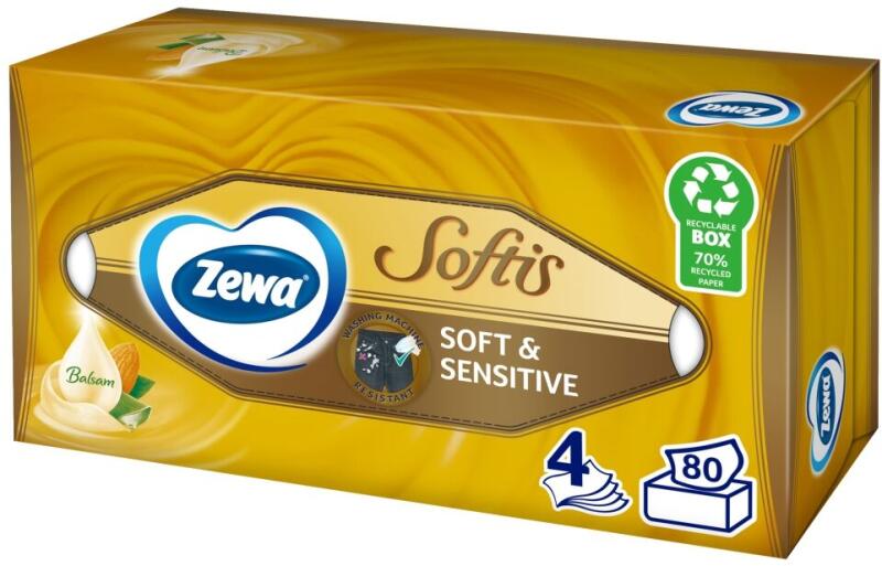 Zewa Softis Soft& Sensitive 4 rétegű dobozos Papír zsebkendő 80db (830423) Pepita.hu