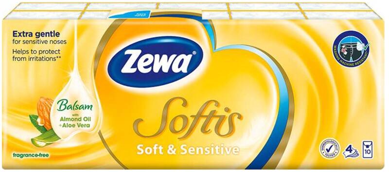 Zewa Softis Soft & Sensitive papírzsebkendők, 4 rétegű, 10x9 db