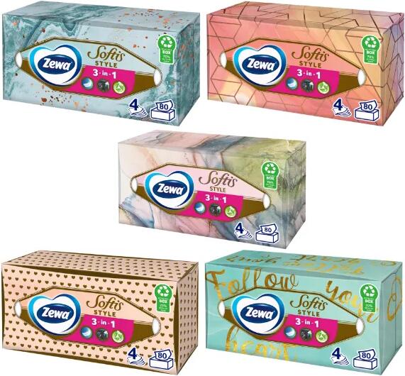 Zewa Softis Style illatmentes dobozos papír zsebkendő 4 rétegű 80 db