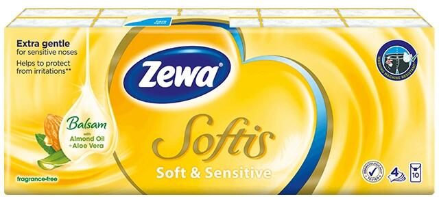 Zewa Softis zsebkendő 4 réteg 10x9db Mandula Balzsam