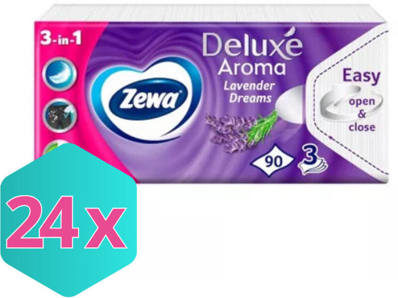 A Zewa Deluxe Camomile Comfort illatosított papírzsebkendő háromrétegű, puha és ugyanakkor szakadásmentes. Az extra kényeztetés érdekében enyhe levendula illatot áraszt magából. Használatával csökkenthető az orr kivörösödése és a megfázással járó egyéb tünetek. A zsebkendők könnyen nyitható és visszazárható csomagolásban érkeznek, így praktikusak mind otthon, mind útközben.